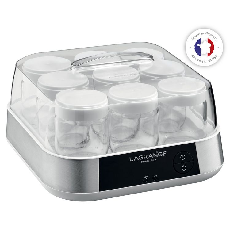 La yaourtière Lagrange 459001 est un appareil électroménager conçu pour la préparation de yaourts faits maison. Elle est transparente et possède une puissance de 18 watts. Elle est livrée avec 9 pots en verre avec couvercles empilables, chacun ayant une capacité de 185 g. L'appareil est programmable jusqu'à 15 heures et dispose d'un arrêt automatique pour une utilisation pratique et sans souci. L'écran électronique permet de régler facilement le temps de préparation et de surveiller la progression de la cuisson.