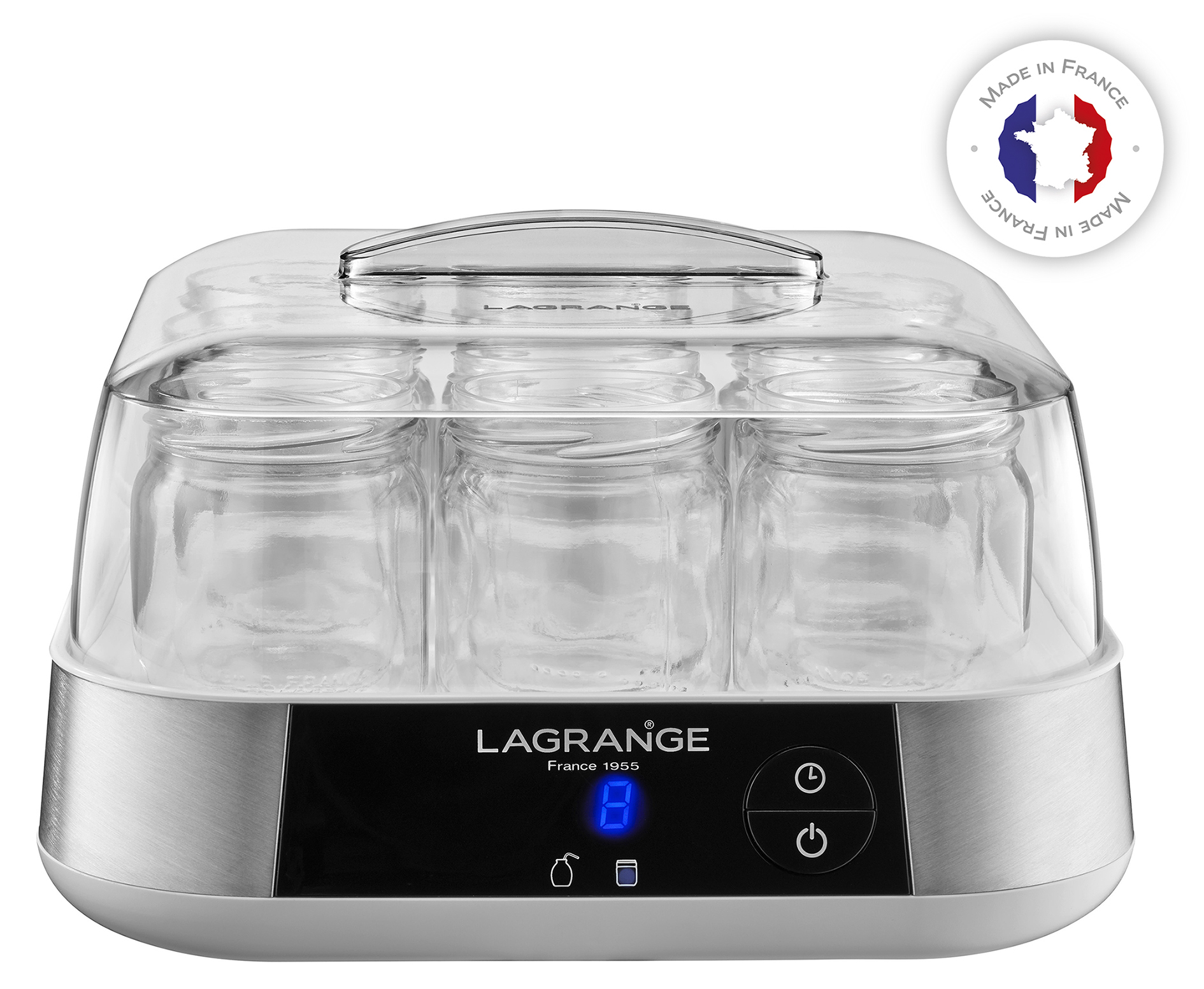 Pots verre avec couvercles empilables, Fonctions yaourts et yaourts à boire, Programmable 15 H, Arrêt automatique, Ecran électronique