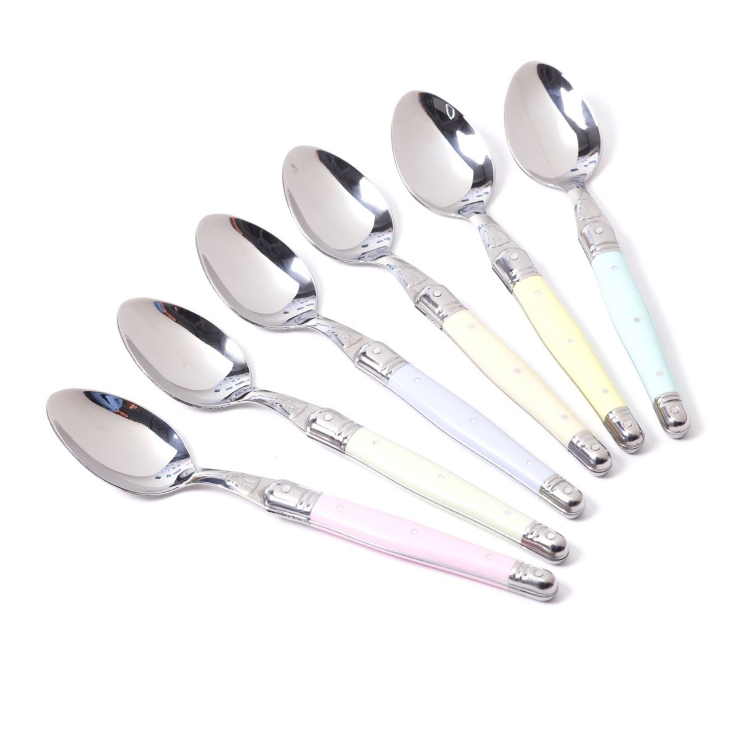 En savoir +Egayez votre table au quotidien grâce à ce coffret de 6 cuillères à soupe Laguiole. Epaisseur 1,5 mm, manche ABS coloré et ergonomique. Présentation dans un coffret en bois alvéolé naturel. Fabrication française. Coloris : acidulé, lin et pastel. Ce set de 6 cuillères Laguiole de grande qualité passe au lave-vaisselle.