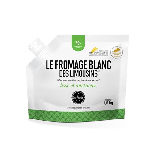 Le fromage blanc des Limousins est sans additif ni conservateur. Son format en poche de 1,5kg est familial et simple d'utilisation.