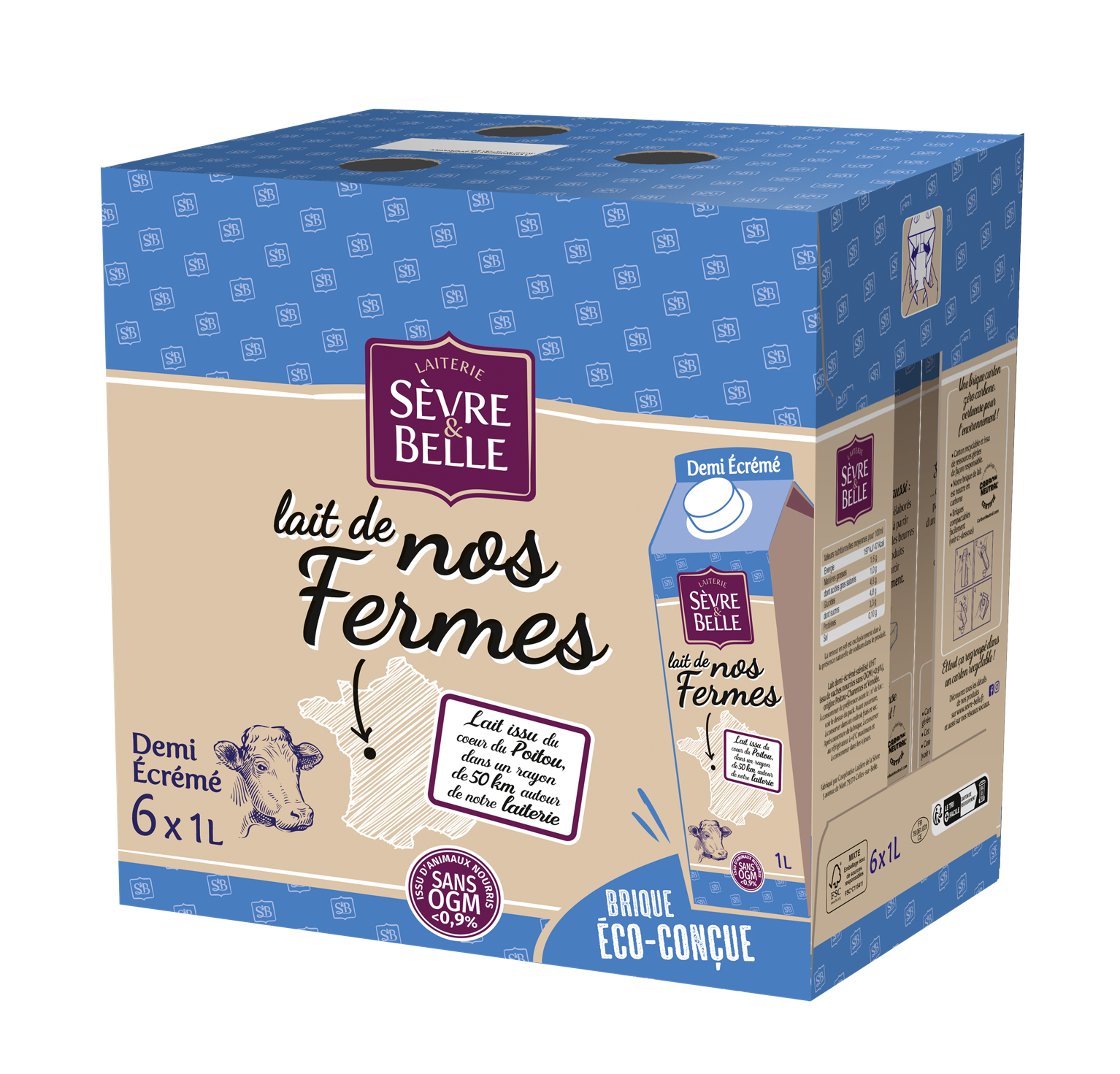 LAIT UHT DEMI ECREME DE VACHE 1L SEVRE ET BELLE