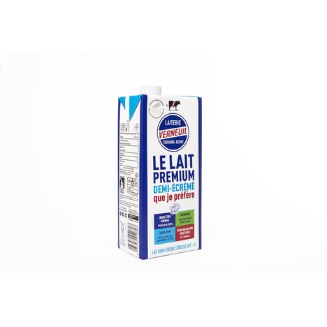 Lait stérilisé UHT demi-écrémé de marque VERNEUIL