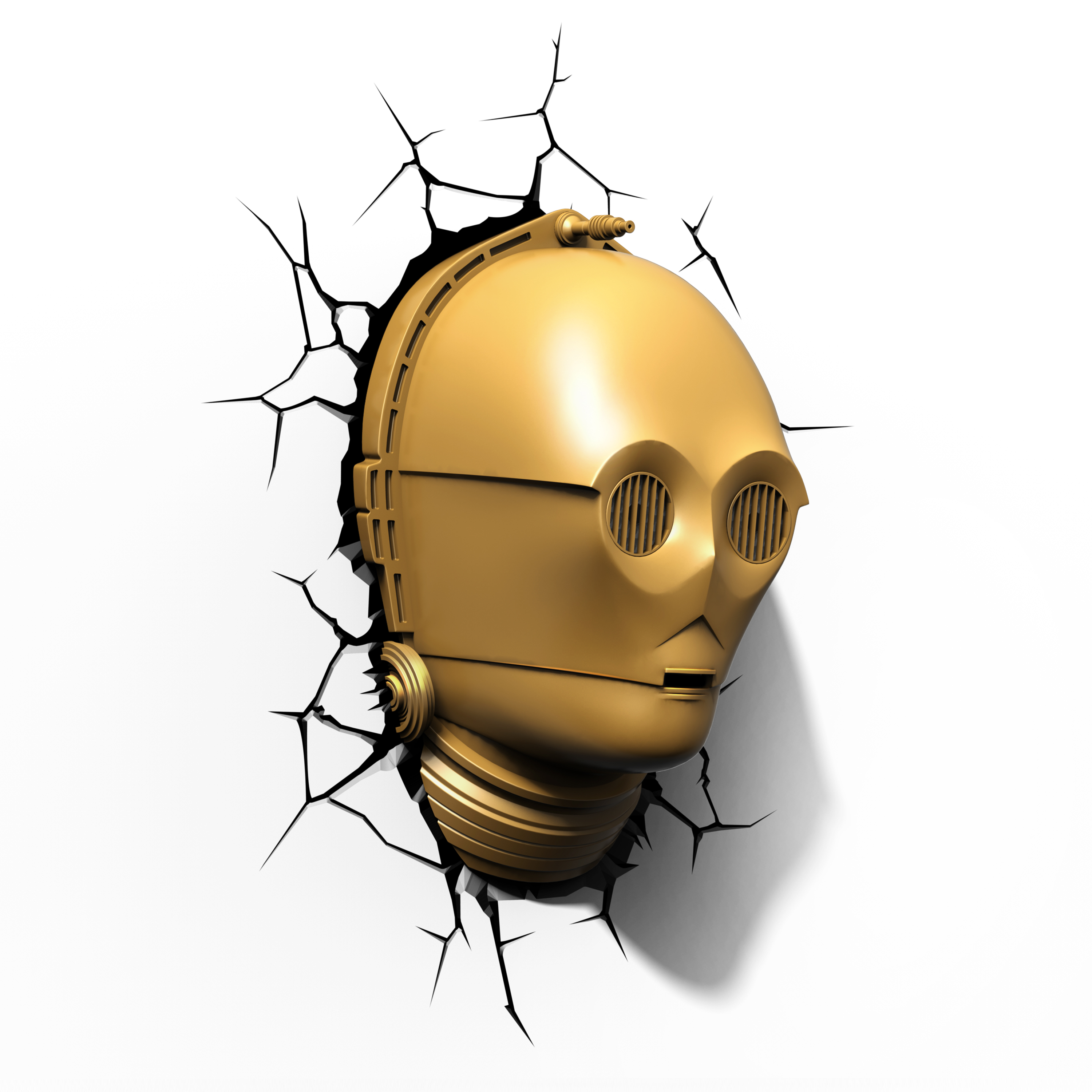 Retrouve les héros du film évènement Star Wars. La lampe veilleuse C-3 PO est à accrocher dans ta chambre. Pour un rendu 3D bluffant, il suffit de coller sur ton mur l’autocollant effet mur craquelé et de placer ensuite le bouclier par dessus.