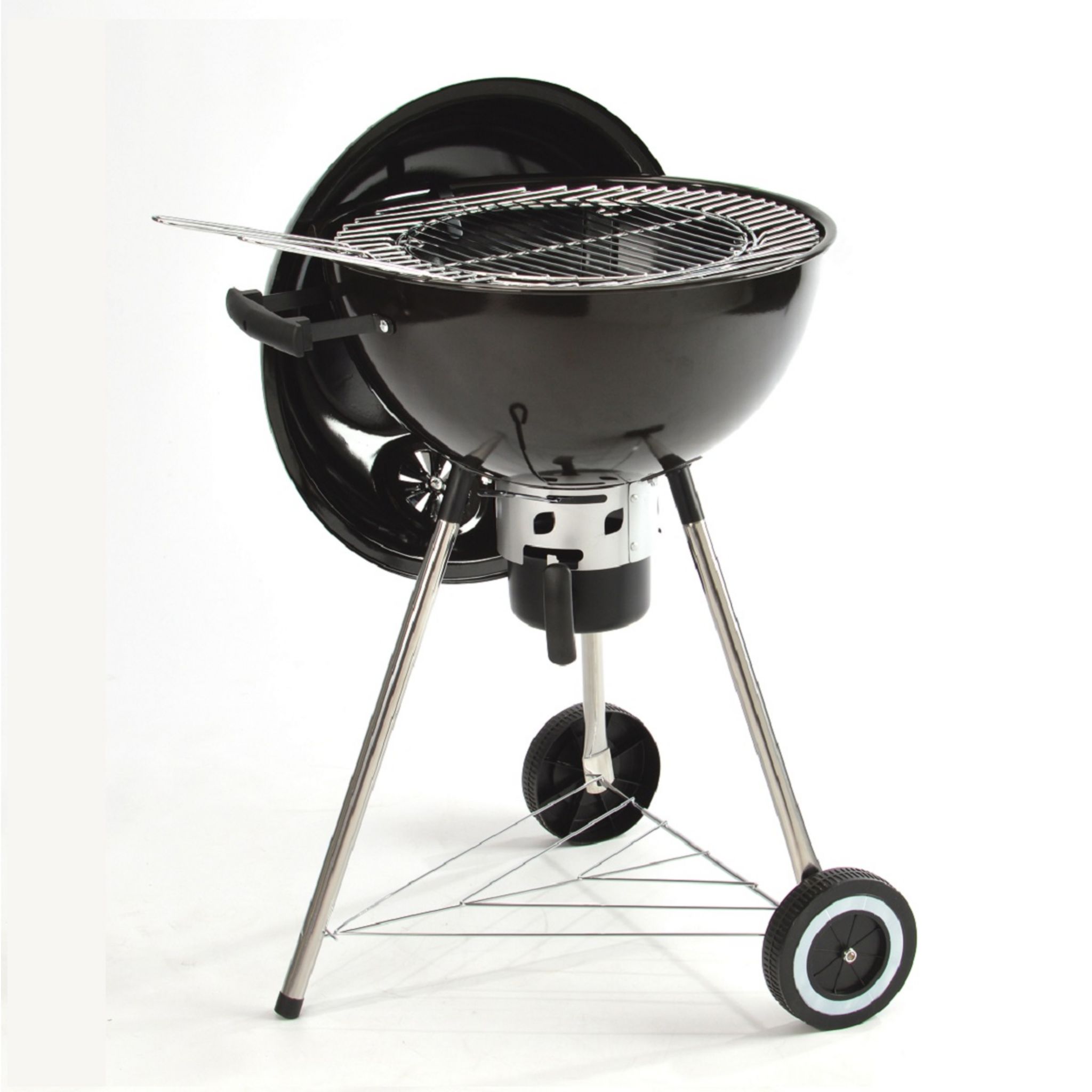 Barbecue boule à charbon de bois en acier émaillé et grille de cuisson chromée. Ce barbecue est de forme sphérique, et possède un affichage de la température sur le couvercle de votre barbecue, ce qui vous permettra de la régler plus facilement. Le couvercle et la cuve sot en acier émaillé de coloris noir. La surface de cuisson pour ce barbecue charbon de bois est de 43 cm de diamètre.