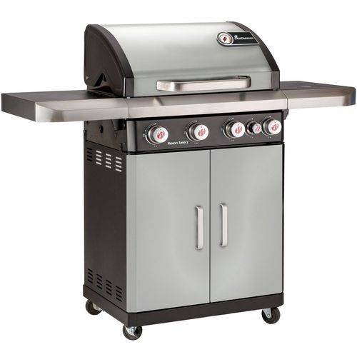 "Barbecue à gazen en inox avec 4 brûleurs en acier inoxydable réglables en continu + 1 brûleur latéral encastré