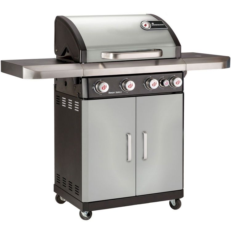 Ce barbecue à gaz de notre gamme Rexon est doté de 4 brûleurs en acier inoxydable réglables en continu (4 x 3,0 kW) et d'un brûleur latéral (3,0 kw). Celui-ci permet de faire cuire vos plats d'accompagnement juste à côté de vos grillades. Le Rexon 4+1 est équipé d'un allumage piézo, d'un theromètre intégré au couvercle à double paroi et d'un placard inférieur fermé. Les grilles de cuisson sont en fonte, la grille de maintien au chaud, les couvre-brûleurs, le foyer et le bac récupérateur de graisse sont en acier émaillé. La surface de cuisson rectangulaire de 65 x 40 cm permet de faire des grillades pour 8 à 10 personnes.