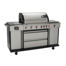 5 brûleurs inox 3.5kW - 1 brûleur infrarouge arrière 3.5kW - 1 double brûleur latéral 5.3kW