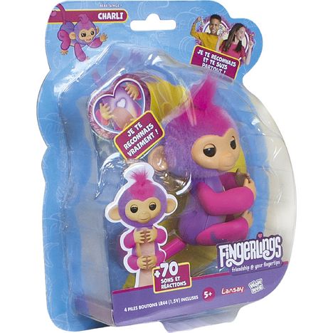 Les Fingerlings sont tes meilleurs amis !Accroche Charli à ton doigt pour voir son cœur s’allumer et l’entendre communiquer avec toi !Tu entendras plus de 70 sons et réactions super craquants !Chaque Fingerling a sa propre personnalité et des sons uniques ! Caresse la tête toute douce de ton Fingerling ou berce-le pour l’endormir, retourne-le et tiens-le par la queue pour l’entendre crier !Charli et ses amis, Harmony, Ava et Léo, n’attendent que toi !
