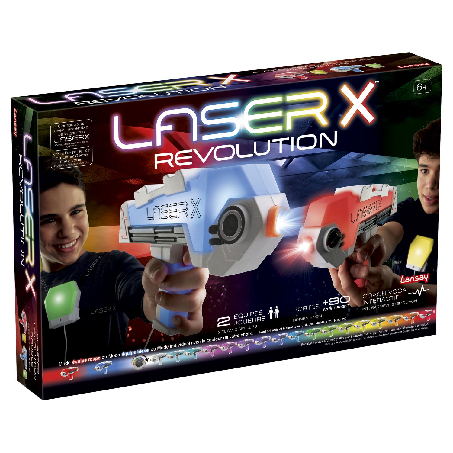 Redécouvrez les sensations du Laser Game en intérieur et en extérieur, en individuel ou en équipe avec Laser X Révolution. À l’aide du variateur de couleur, sélectionne la couleur de ton choix parmi 20 couleurs en mode individuel. Le pistolet s’allume entièrement lorsque tu sélectionnes