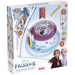 La station créative Ma spirale surprise permet de réaliser très facilement 10 dessins à l'effigie de la Reine des Neiges II. Comment cela fonctionne ? l'enfant positionne l'illustration de son choix au centre de la station. En appuyant sur le bouton, l'illustration se met à tourner, l'enfant peut alors ajouter de la peinture. Une fois terminé, l'enfant retirer délicatement le film protecteur et il peut découvrir sa création. Des paillettes sont fournies et peuvent être utilisées sur les dessins. Conseillé à partir de 5 ans.