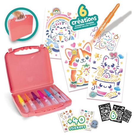 Malette blopens contenant : 6 feutres blopens , des stickers et 6 pochoires