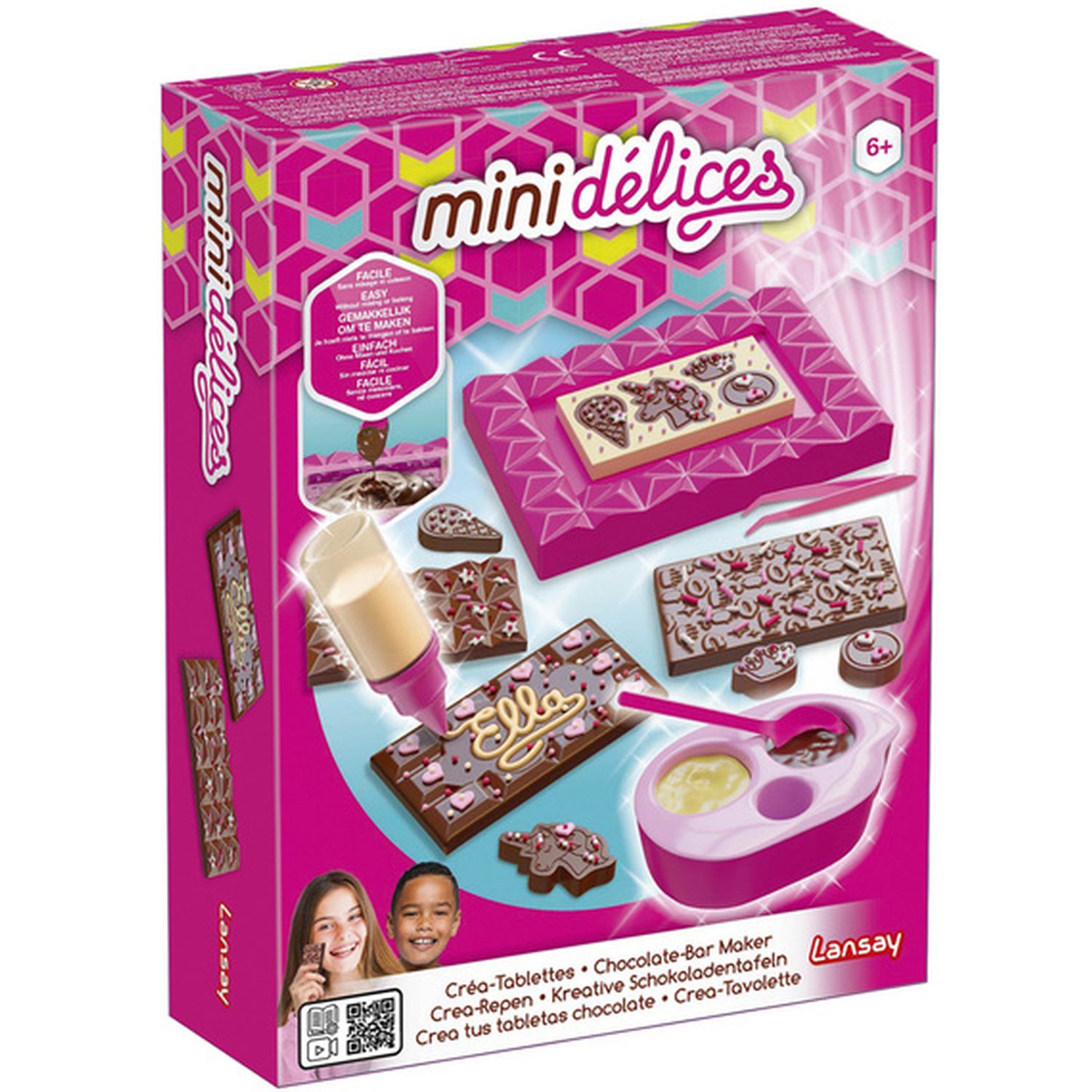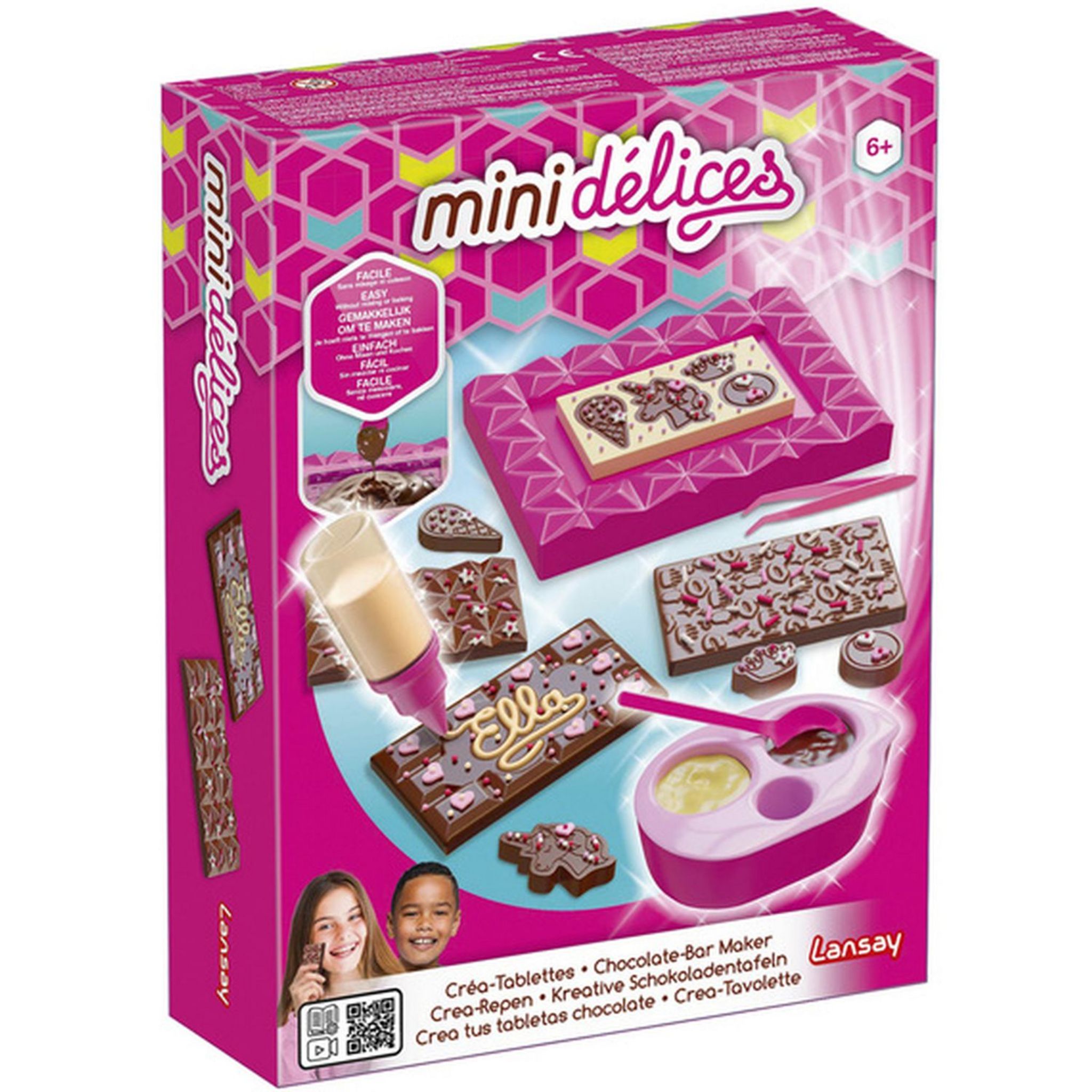 Créez vos propres tablettes de chocolat avec l’Atelier Créa-Tablettes Mini Délices et créez facilement différentes tablettes de chocolat ! Tu pourras également créer des tablettes personnalisées en y ajoutant des inserts avec du chocolat contrastant, et même écrire ton prénom sur des tablettes grâce au stylo à chocolat ! Déguste tes créations ou offre-les dans les emballages inclus !