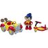- La figurine mesure 10 cm, la voiture mesure 14 cm et la trottinette mesure 10.5 cm.