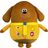 Cette douce peluche aboie et chante lorsqu’on appuie sur son badge orange
