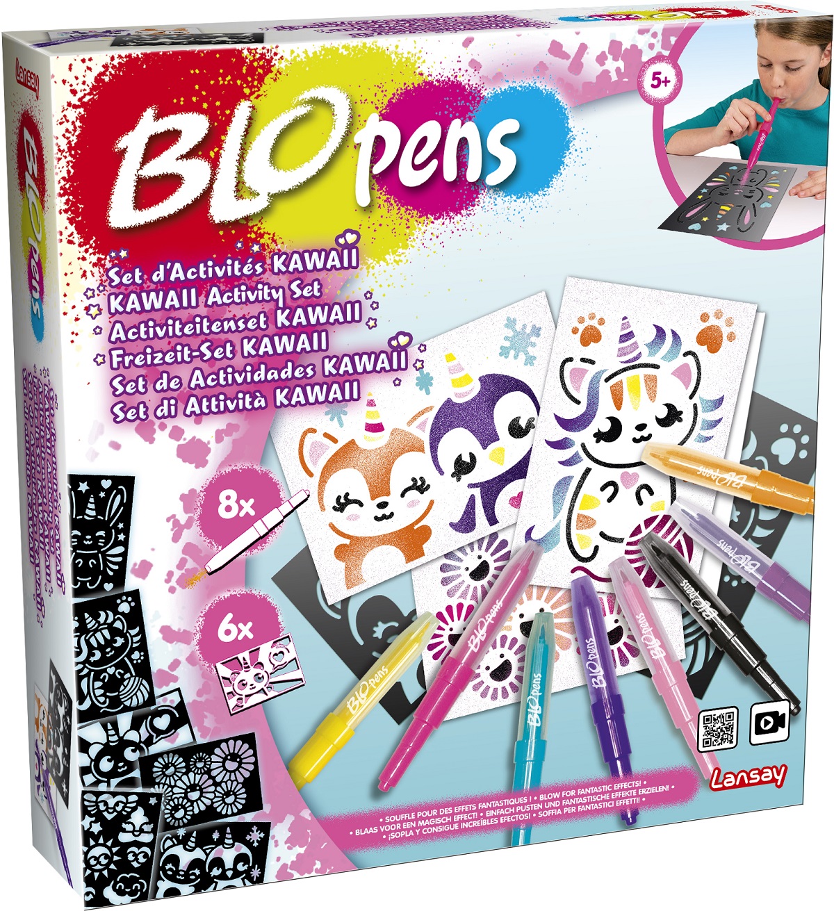 Amusez-vous à créer avec votre set d'activités Blopens Kawaii ! Les Blopens sont des feutres magiques, utilisez un pochoir, soufflez dans le stylo et regardez le dessin apparaitre ! Vous pouvez aussi colorier avec la pointe comme avec des feutres classiques. Créez des dessins issus de l’univers trop mignon des kawaii ! Découvrez dans ce set des pochoirs différents pour créer des dessins de toutes les couleurs ! Une activité créative pour créer des dessins avec effet aérographe et laissez libre cours à votre imagination !