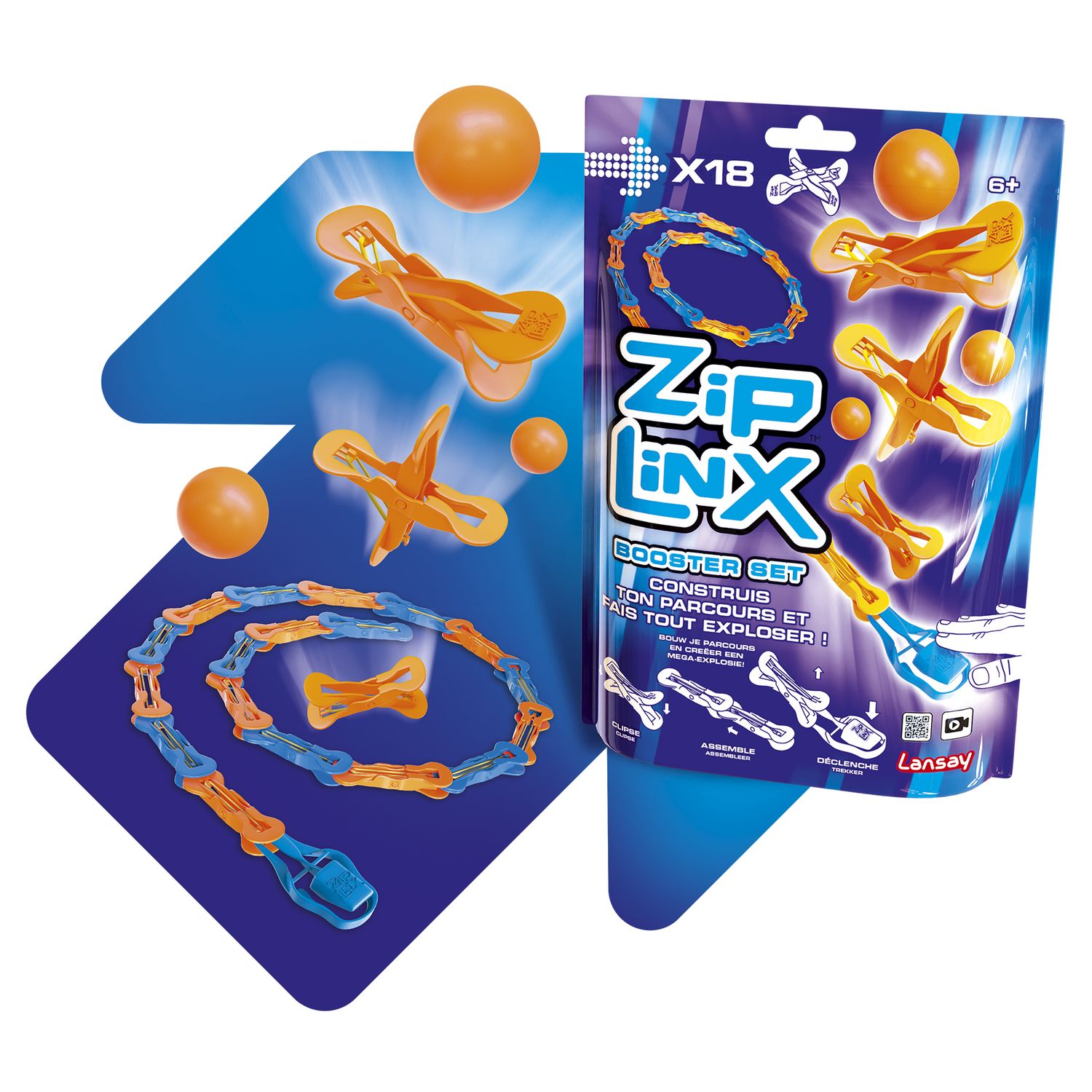 Construis un parcours hors du commun ! Assemble les linx Ziplinx et appuie sur ton lanceur pour tout faire sauter ! Encore plus de linx pour encore plus de fun ! Tu trouveras dans ton booster set 18 linx et 3 balles. Prêt à tout faire exploser ?
