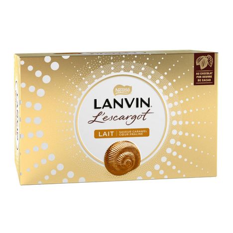 Découvrez l'Escargot LANVIN Caramel avec son praliné onctueux saveur caramel, né de la torréfaction des amandes, et sa coque de délicieux chocolat au lait. L'inimitable praliné Lanvin se dévoile… Ce praliné riche, fruité, onctueux en bouche et fondant au palais est composé d'un mélange savamment dosé d'amandes sélectionnées, lentement grillées et torréfiées, afin de sublimer les arômes en bouche. Avec le Plan Cacao NESTLE, et en partenariat avec Rainforest Alliance, LANVIN s'engage pour une production plus durable de cacao et contribue à soutenir les cultivateurs et leurs communautés. Avec le Plan Cacao NESTLE, et en partenariat avec Rainforest Alliance, LANVIN s'engage pour une production plus durable de cacao et contribue à soutenir les cultivateurs et leurs communautés.