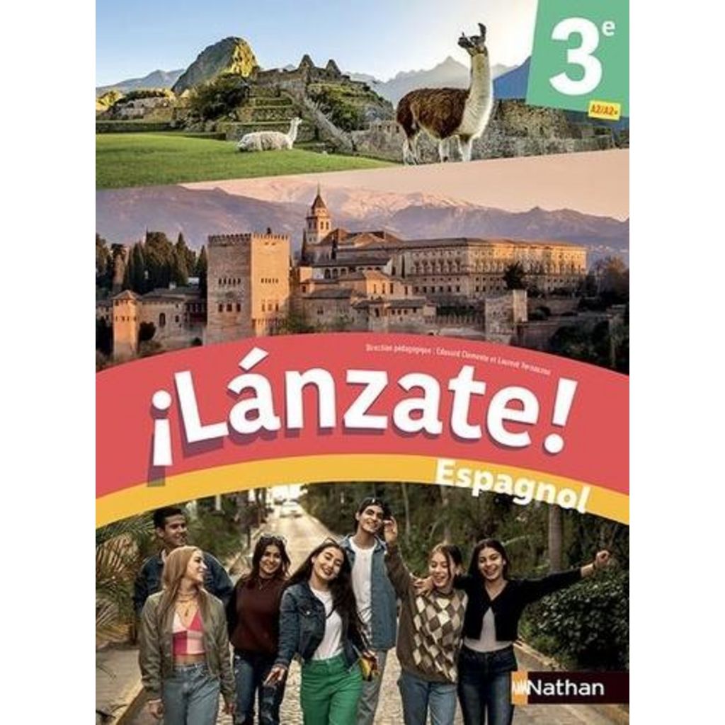 Découvrez la collection d'espagnol collège ¡Lánzate ! , avec un tout nouveau manuel de 3e proposant une approche renouvelée de l'apprentissage pour dynamiser vos cours ! 12 unités de 2 longueurs différentes pour varier le rythme des apprentissages La culture hispanique au coeur des apprentissages grâce à des thématiques attractives et des documents authentiques riches et variés + de 70 vidéos : 55 vidéos authentiques pour la compréhension de l'oral et 18 capusles La gramática en vídeo Un fort accent mis sur la différenciation pour gérer l'hétérogénéité des altes : 4 pages Repaso en début d'année et des parcours différenciés en réception et en production Des jeux pour rebrasser dans chaque unité longue ( ¡A jugar ! ) et un escape game pour découvrir la civilisation olmèque + Un accès simple et direct aux ressources (vidéo, audio, quiz interactifs, liens, site d'actu speakeasy-news. com...) via l'application Nathan Live ! ou via des mini-liens. ACCESSIBILITE : tous les documents textes en version adaptée pour les élèves DYS et/ou en audio , disponible sur les sites compagnons ou dans les manuels numériques. NOUVEAU ! Egalement disponible avec la méthode : un fichier photocopiable qui se substitue au cahier d'activités d'élève ! Un nouvel outil qui favorise la différenciation (exploitation des documents, accompagnement des tâches et documents pour l'évaluation de fin de séquence). > En savoir plus