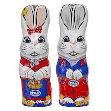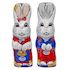 Lapin de chocolat au lait décoré de chocolat blanc et noir