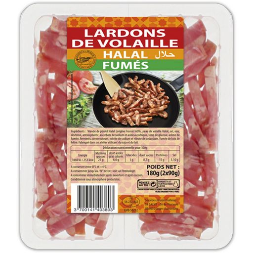 LARDONS VOLAILLE FUME HALAL 2X90G