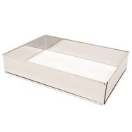 Lares 6012 Le cadre à pâtisserie rectangle de Lares sera parfait pour réaliser facilement vos desserts préférés.Pratique sa longueur et sa largeur peut être extensible jusqu'à 46 cm et 32 cm. - Acier inoxydableHauteur : 4.7 cmLongueur : 25 à 46 cmLargeur : 17 à 32 cmModèle extensibleFormat rectangul