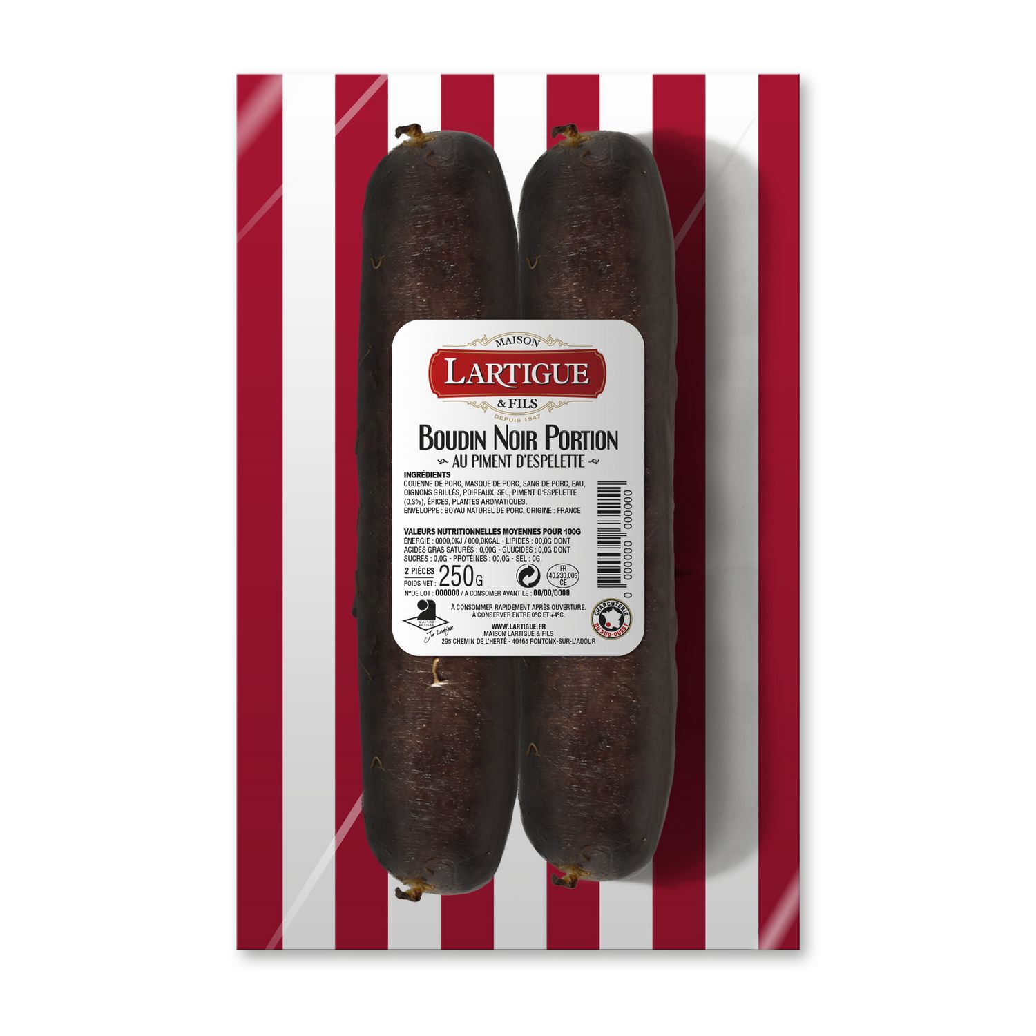 BOUDIN NOIR PORTION AU PIMENT D'ESPELETTE 250G