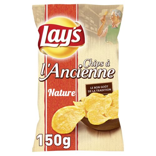 C'est grâce à son savoir-faire traditionnel que Lay's® continue à vous offrir des chips à l'ancienne aussi croustillantes et gourmandes qu'autrefois. Des chips fines et croustillantes Une cuisson douce De fines tranches de pommes de terre Un goût exceptionnel Une recette traditionnelle simple 3 ingrédients seulement ! Pommes de terre Huiles Sel ✓ Sans huile de palme* ✓ Sans colorant artificiel ✓ Sans conservateur *Pour plus d'informations, consulter www.lays.fr Des chips de qualité comme autrefois 1. Des pommes de terre soigneusement sélectionnées. 2. Une fabrication de qualité. 3. Un sachet protecteur. Ces pommes de terre sont Sélectionnées - Lavées - Pelées - Frites - Assaisonnées - Emballées Chips de pommes de terre à l'ancienne goût nature