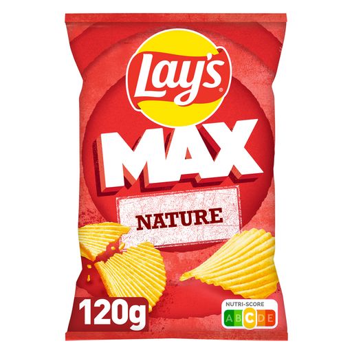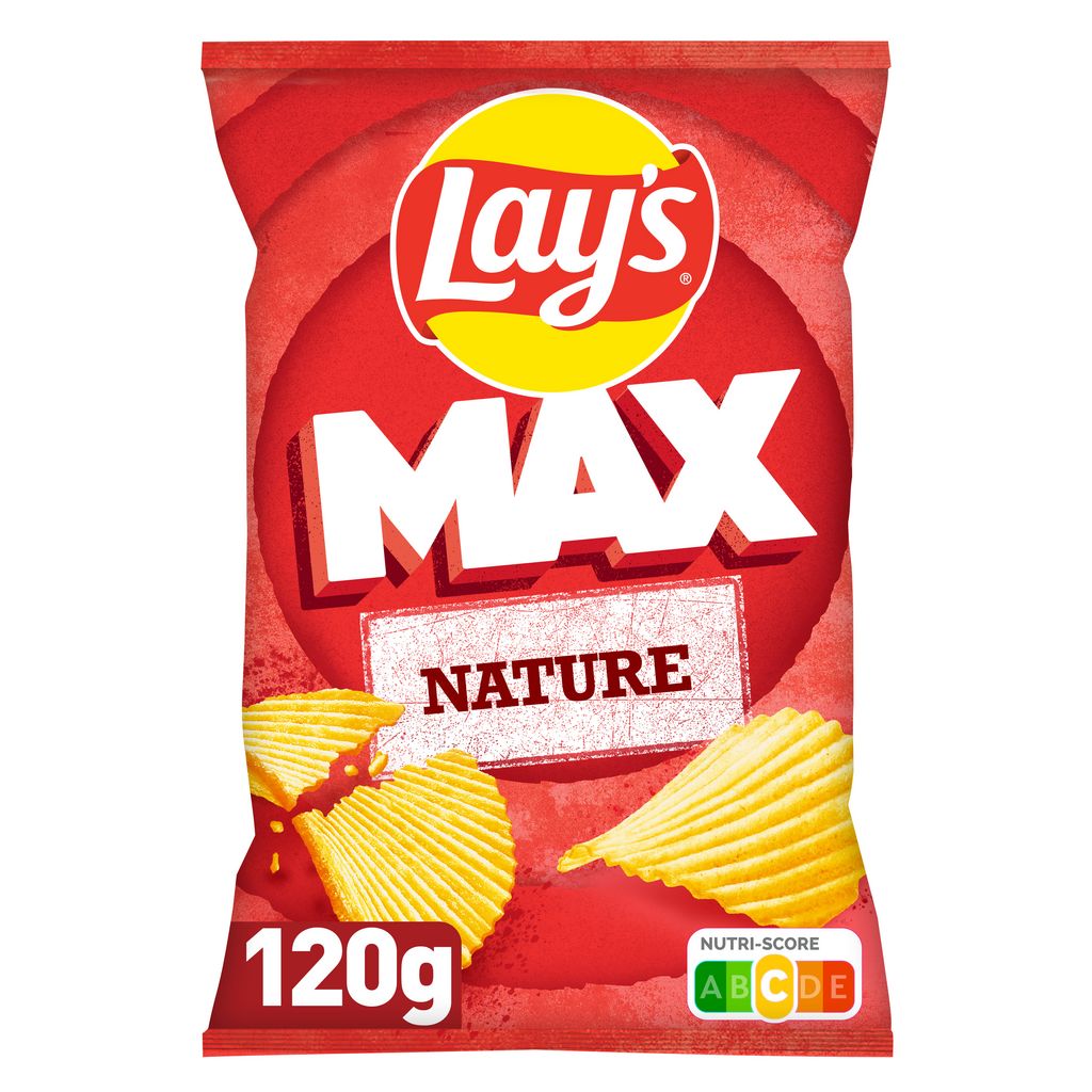 LAY'S MAX NATURE SEL : Des chips de pomme de terre nature terriblement craquantes et savoureuses. LAY'S MAX, MAXI CRAQUANTES POUR UN MAX DE GOÛT : Lay's MAX, la gamme de chips ondulées de Lay's. Que ce soit nature, saveur barbecue, saveur poulet aux herbes, sauce burger à l'américaine ou bien saveur moutarde pickles, craquez pour une explosion de saveurs ! Lay's Max, vos chips Maxi craquantes pour un MAX de goût. DES CHIPS POUR SAVOURER CHAQUE MOMENT DU QUOTIDIEN : Pour l'apéritif, lors d'un pique-nique, à un barbecue d'été ou sur le pouce pour compléter un sandwich : Lay's vous accompagne à chacun de ces moments avec ses biscuits apéritifs aux saveurs délicieuses !
