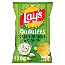 Chips de pommes de terre ondulées saveur crème fraiche et oignon