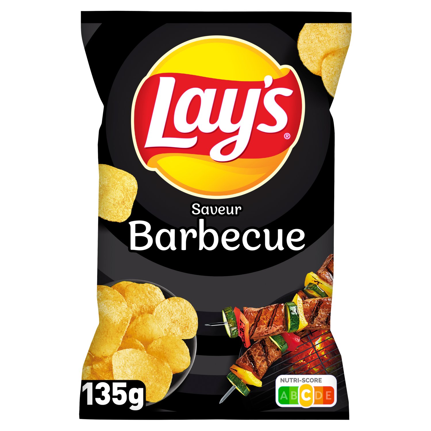 pommes de terre,huiles végétales (tournesol, colza, maïs, en proportion variable),base aromatisante barbecue [sucre, arôme (dont SOJA), paprika, poudre d'oignon, poudre de tomate, poudre d'ail, correcteurs d'acidité (acide citrique, acide malique), colorant (extrait de paprika), arômes de fumée],sel