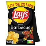 pommes de terre,huiles végétales (tournesol, colza, maïs, en proportion variable),base aromatisante barbecue [sucre, arôme (dont SOJA), paprika, poudre d'oignon, poudre de tomate, poudre d'ail, correcteurs d'acidité (acide citrique, acide malique), colorant (extrait de paprika), arômes de fumée],sel