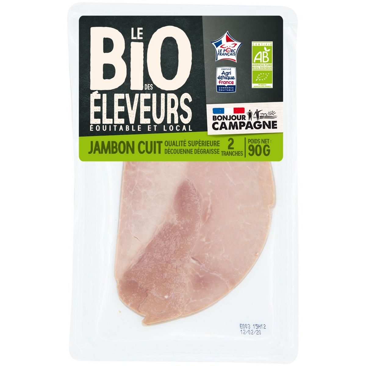 JAMBON SUPERIEUR DECOUENNE DEGRAISSE 2TR BONJOUR CAMPAGNE 2 tranches de 45g découennées dégraissées, porc 100% français bio