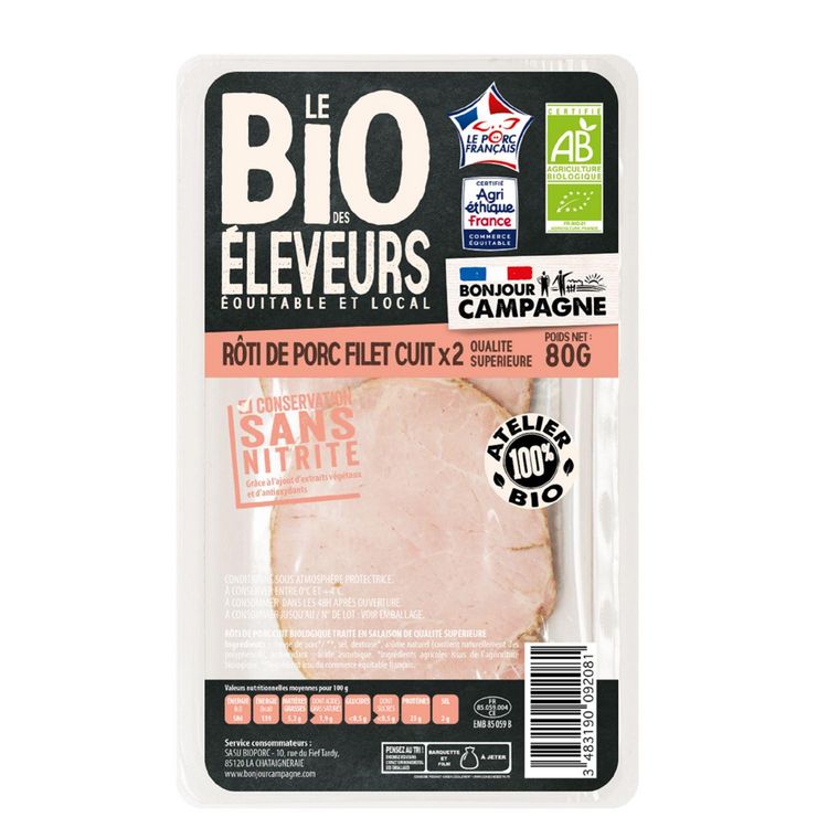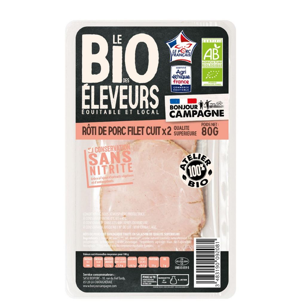 Roti de porc bio filet cuit sans nitrite