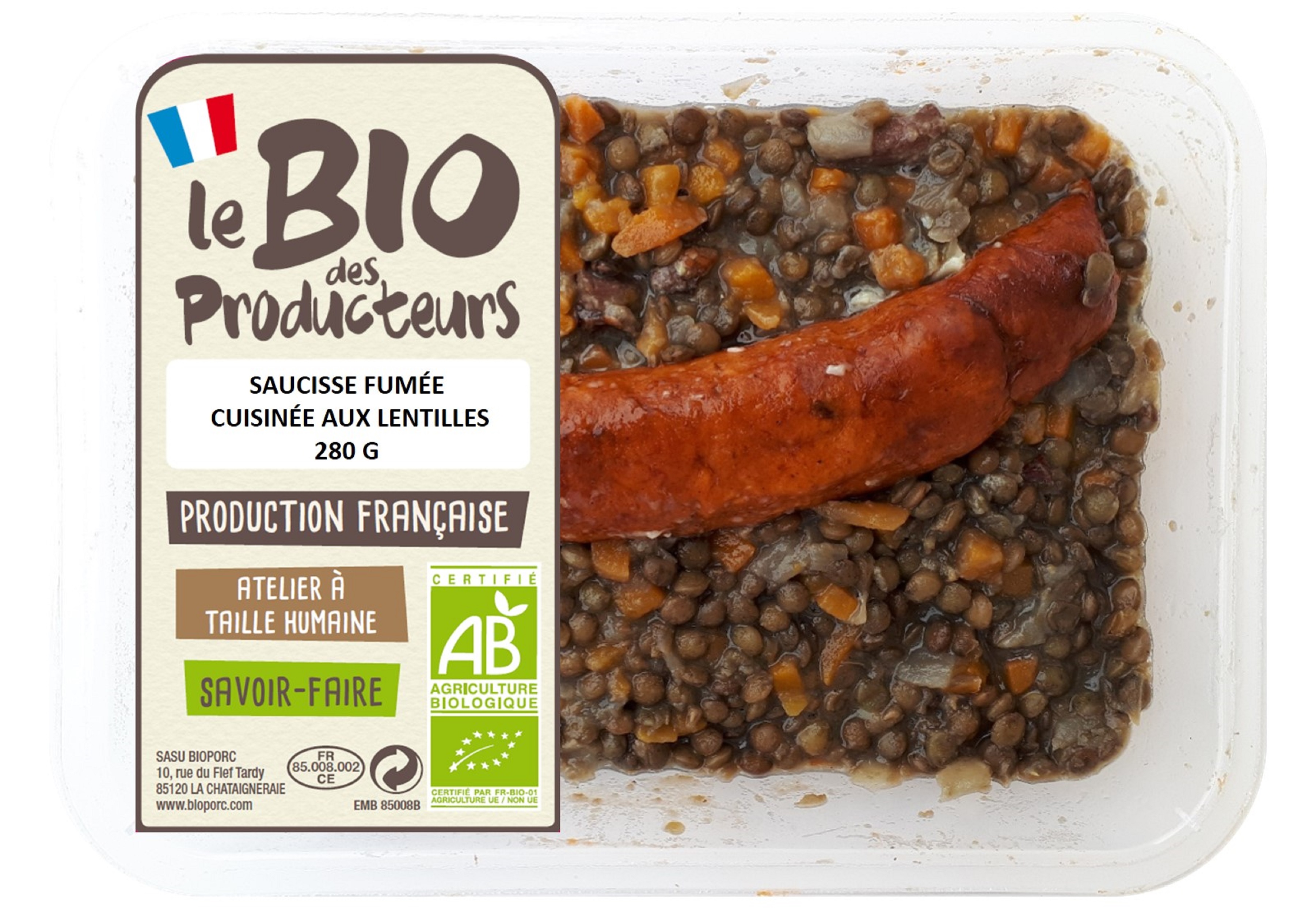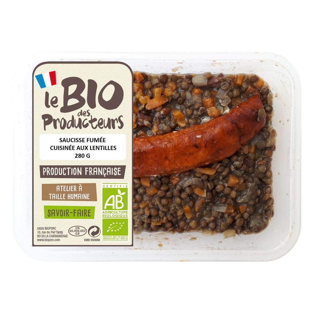 Saucisse fumée cuisinée aux lentilles bio