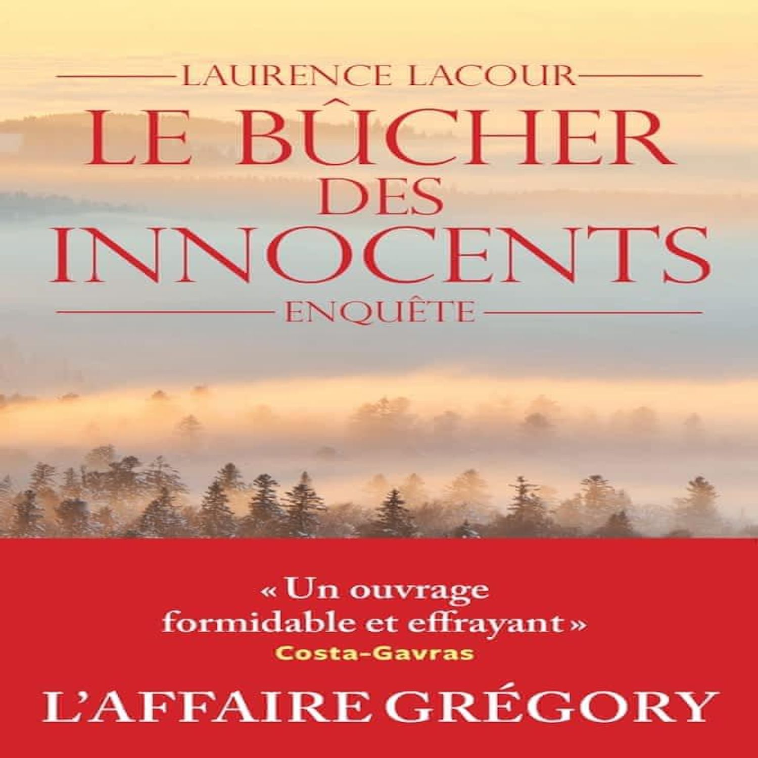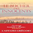 En 1984, jeune journaliste à Europe 1, Laurence Lacour arrive dans la vallée de la Vologne pour couvrir l'assassinat de Grégory Villemin, 4 ans, enlevé, tué et jeté dans la rivière. J'espère que tu mourras de chagrin, le chef , a écrit l'assassin dans une lettre anonyme adressée au père de l'enfant. Ce drame bouleversant et la présence d'un mystérieux corbeau qui harcèle cette famille depuis des années donnent naissance à un feuilleton national retentissant. Celui-ci engendre une suite de dérapages judiciaires et médiatiques qui en feront une histoire tristement exemplaire. Le Bûcher des innocents est une enquête de haut vol, minutieuse et haletante. Il apporte la preuve que lorsque les institutions sont défaillantes, la société moderne peut renouer avec les crises de sorcellerie et rallumer les bûchers. C'est aussi le récit, humain et tendre, de l'initiation d'une jeune journaliste confrontée à une affaire hors norme. Salué par la critique lors de sa parution en 1993, ce livre a été réédité en 2006 dans une version enrichie et constitue le livre référence de cette tragédie. Le Bûcher des innocents a fait l'objet d'une adaptation à la télévision par Raoul Peck et Pascal Bonitzer : L'Affaire Villemin.