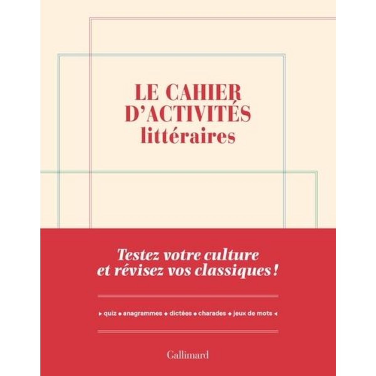 Quatre-vingts pages pour tester ses connaissances en littérature, braver l'anacoluthe et retrouver ses auteurs préférés en se divertissant ! Ce cahier d'activités propose de nombreux jeux pour tous les passionnés et amateurs des belles lettres : Quiz, jeux de datation, grilles à mots cachés ou encore mots mystères, charades, dictées et autres QCM. Apprendre le jargon d'une maison d'édition, redécouvrir les plus grands auteurs altiques et contemporains, rêver avec Marcel Proust ou Charles Dickens, parcourir les correspondances enflammées entre George Sand et Alfred de Musset, deviner la date de publication du premier roman d'Annie Ernaux, réviser tous les prix littéraires - Nobel, Goncourt ou encore Médicis - voyager avec les auteurs japonais ou africains, les autrices oubliées mais aussi les poètes et les dramaturges... De jolis mots et des exercices pour s'amuser, relire ses auteurs adorés ou se délecter de citations merveilleuses... Et, surtout, apprendre toujours, en se trompant, parfois !