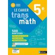 Un cahier de mathématiques bi-média réunissant le meilleur du papier et le meilleur du numérique conforme aux programmes officiels et aux repères de progressivité Une méthode qui propose de combiner outils papier et numérique : - un cahier d'activités pour s'entraîner et garder une trace écrite - la plateforme Biblio Exos pour s'autoévaluer et vérifier les acquis Le cahier Transmath 5e, c'est aussi : - Plus de 500 exercices différenciés signalés par , , pour maîtriser les bases, s'entraîner et se perfectionner. - De nombreux exercices d'algorithmique pour s'entraîner avec Scratch. - Des tâches complexes proposant des situations favorables à la résolution de problèmes et à la pratique d'une démarche scientifique. - Tous les corrigés disponibles dans le cahier numérique enseignant