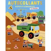 L'enfant découvre tout plein d'engins de construction en action sur différents chantiers ! Pour chaque scène, il retrouve sur sa planche d'autocollants les images indiquées, puis il les colle où il le souhaite sur la page, afin de compléter l'histoire !