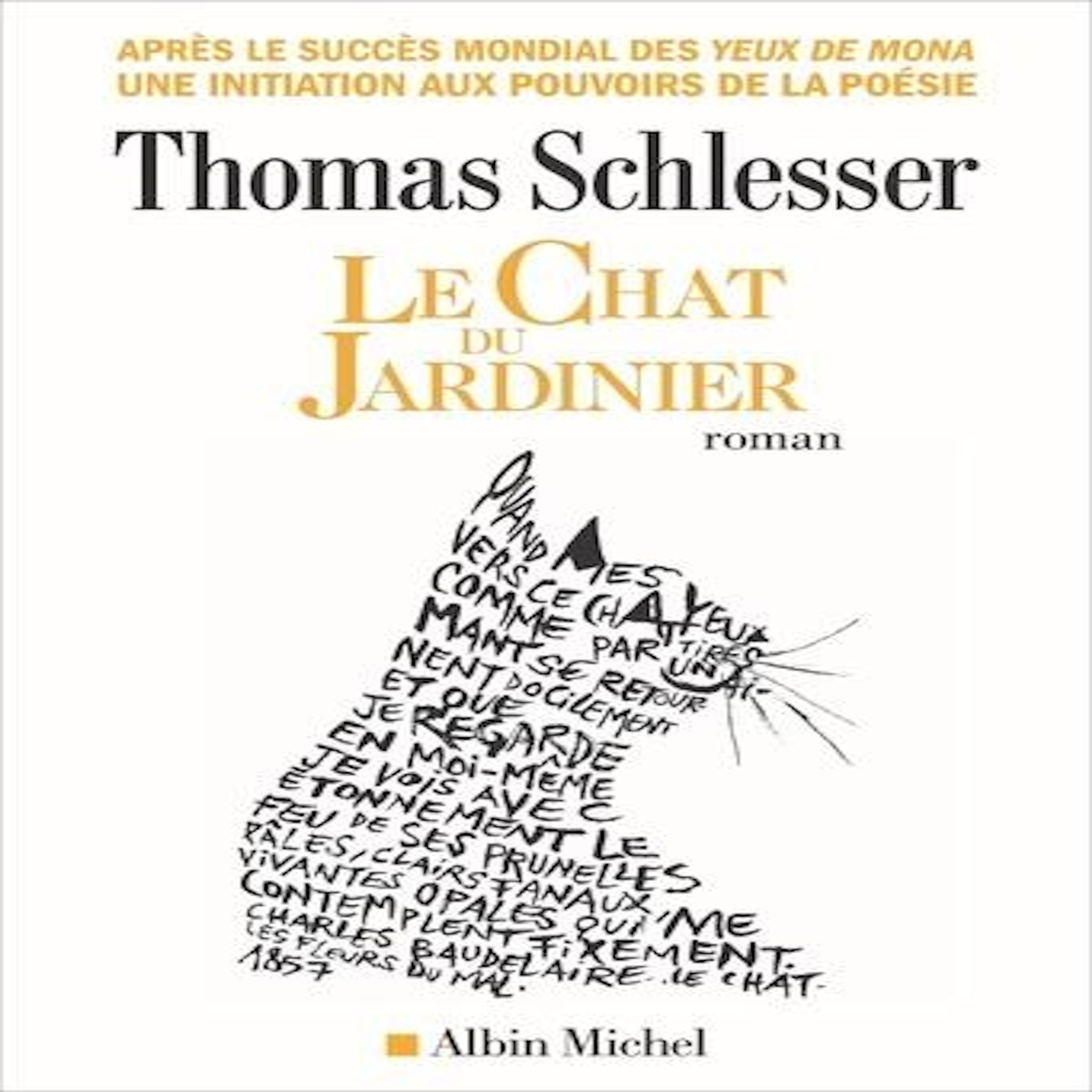 1ère sélection du grand Prix RTL-Lire Apres son best-seller Les Yeux de Mona, I'expert de l'art confirme avec Le Chat du jardinier son grand talent de passeur pour une matiére au moins aussi complexe que la peinture : la poésie. Les Echos La poésie, c'est le plus joli surnom que l'on donne à la vie . Une tempête vient de ravager l'arrière-pays provençal. Louis, jardinier hypersensible, ne parvient plus à faire face aux épreuves qui s'accumulent et plonge dans une souffrance muette. Il va alors faire la connaissance d'une femme extraordinaire. Thalie, professeure de français fraîchement retraitée, à la fantaisie solaire et communicative, va lui proposer un pacte : Louis soignera les oliviers et les lauriers-roses de son domaine voisin dévasté tandis qu'elle l'initiera aux pouvoirs de la poésie. De Sappho à Hugo et Rimbaud, de Pessoa à Neruda, un hymne aux mots des plus grands poètes, à l'amitié et à la vie. Au verso de la jaquette, découvrez le manuscrit du célèbre poème de Rimbaud, L'Eternité.