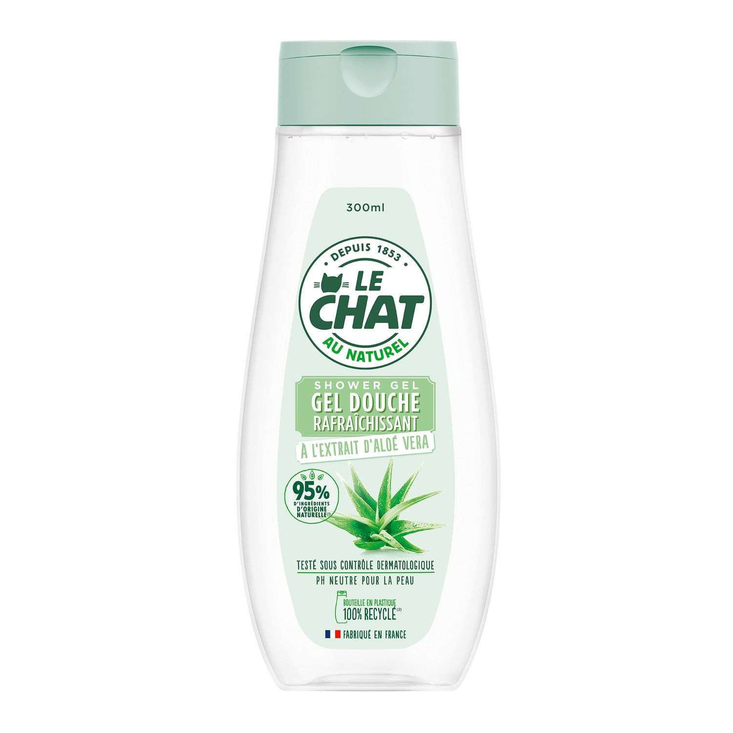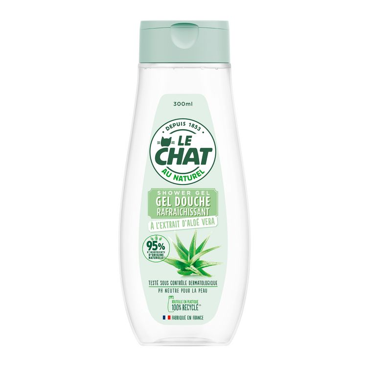 Le Chat Gel Douche rafraîchissant à l'extrait d'Aloe Vera : une formule qui respecte l’équilibre naturel de la peau tout en vous offrant un moment rafraîchissant.