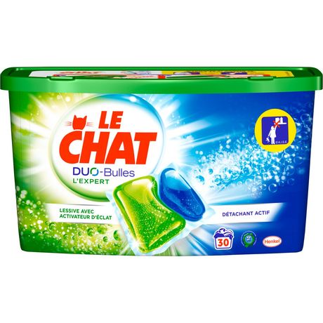 LE CHAT L'EXPERT - Lessive en doses - Duo-bulles - Boite 750g / 30 caps / 30 lavages