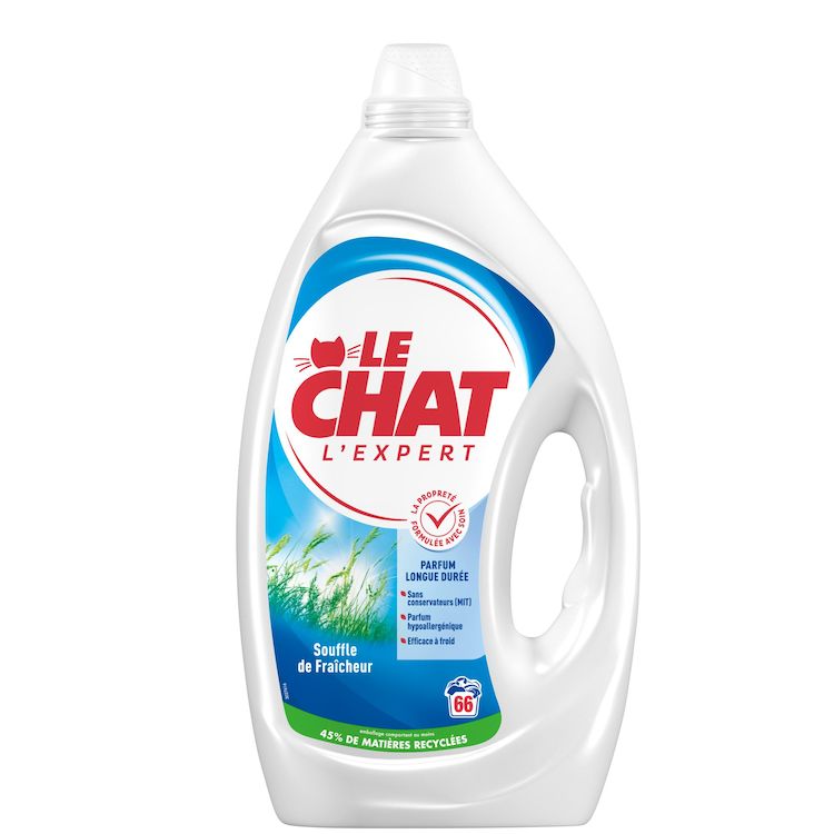Le Chat L'Expert Souffle de Fraîcheur, vous offre un linge impeccable même à froid et un parfum frais longue durée.