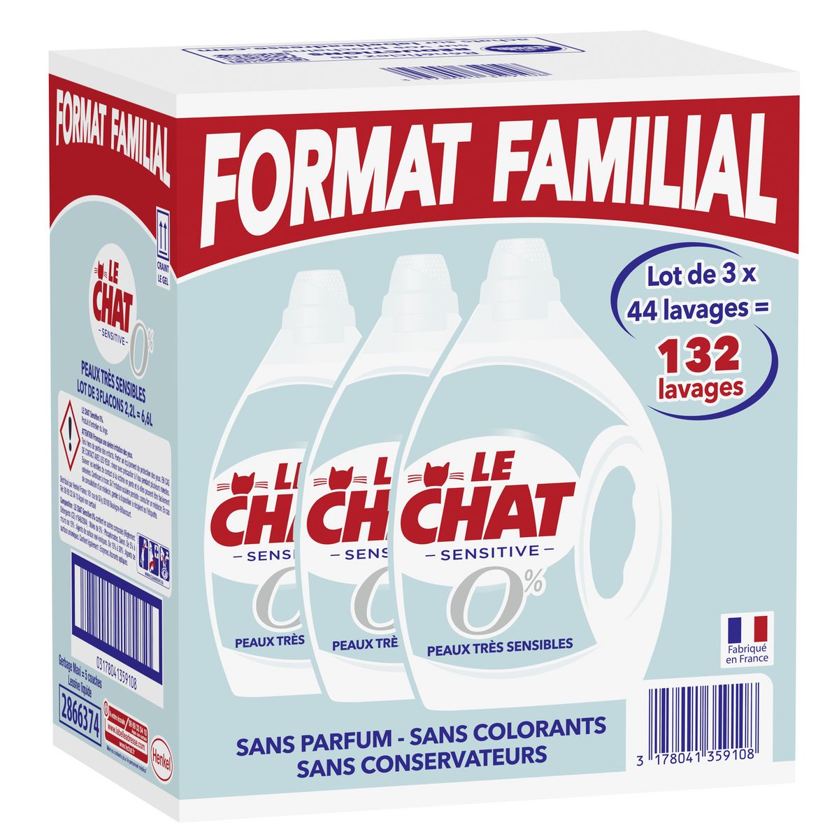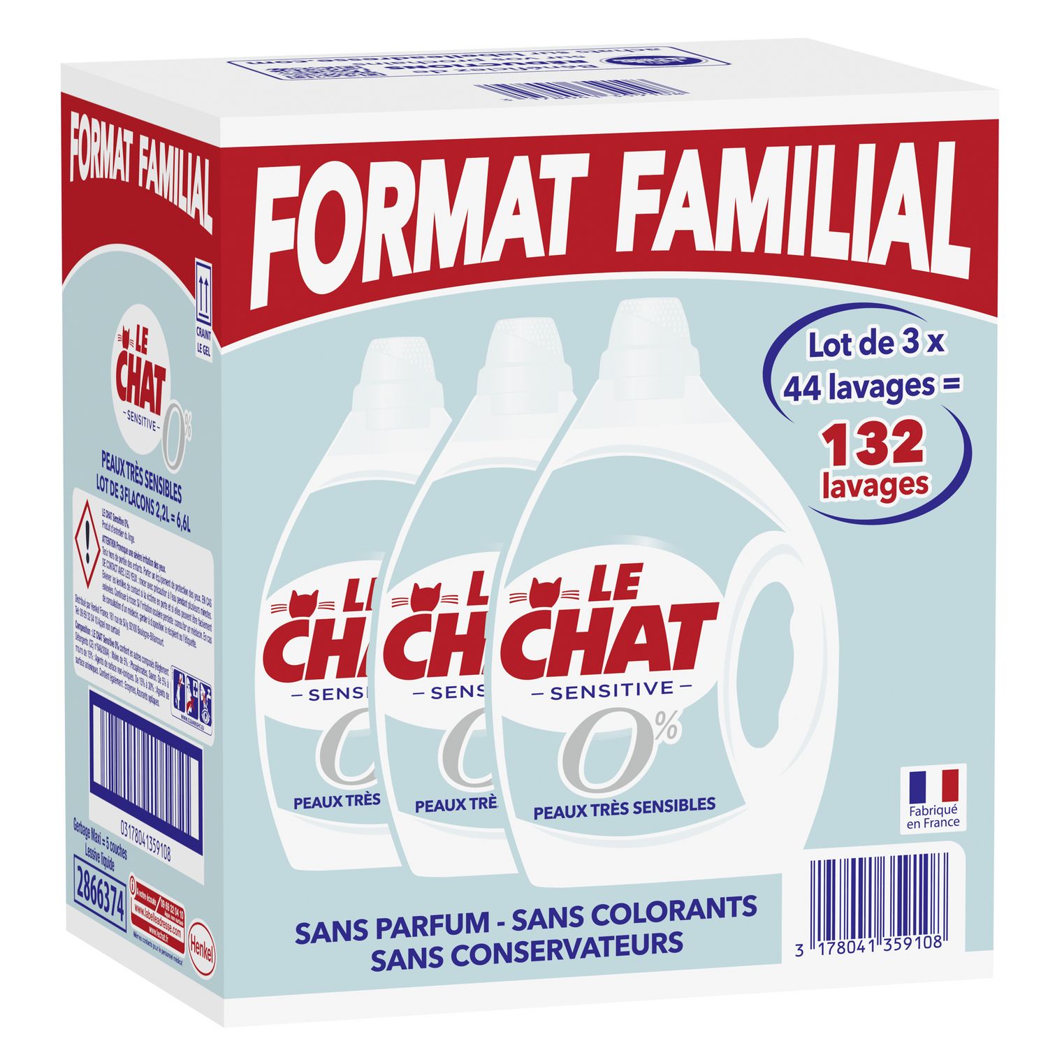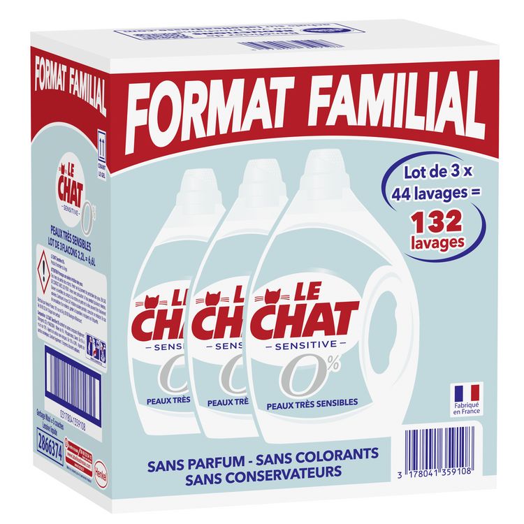 Le Chat Sensitive 0% Lot 3x44 Lavages "Format Familial"