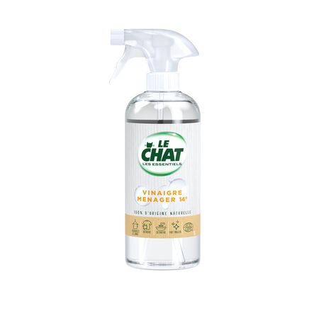 Le Chat Les Essentiels Vinaigre Ménager 14° ECODETERGENT 1L Le Chat Les Essentiels est une gamme qui prend soin de votre linge et de votre maison tout en respectant ce qui est essentiel pour vous : le bien-être de votre famille et votre environnement. Le vinaigre ménager concentré 14° lave naturellement et efficacement toute la maison. Multi-usages, il vous permet de : détacher, assouplir votre linge, nettoyer, éliminer le tartre et le calcaire, faire briller vos surfaces, etc.