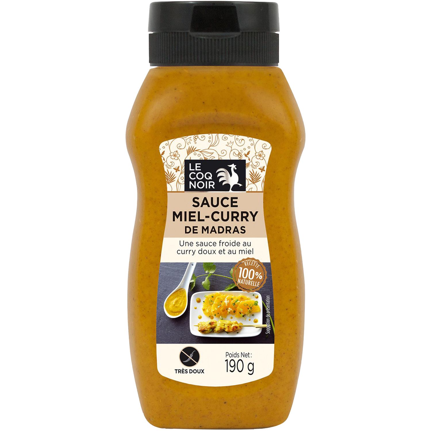 Huile de tournesol, miel d’acacia (19%), vinaigre d’alcool, oignon, gingembre, vinaigre de cidre, ail, épices curry de Madras poudre (3,7%), sel, curcuma