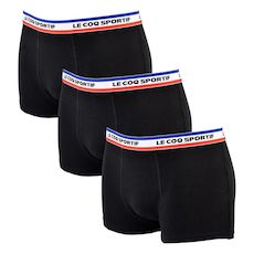 Associez confort et élégance avec ce lot de trois boxers unis signés Le Coq Sportif. Confectionnés en coton stretch respirant, ils offrent un maintien optimal tout en garantissant une totale liberté de mouvement. Leur coupe courte et ajustée épouse parfaitement les formes, tandis que la large ceinture élastique contrastée et logotée assure un maintien sûr sans compression. Un équilibre parfait entre style, maintien et confort au quotidien.