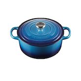 Découvrez la cocotte ronde Evolution de Le Creuset en fonte émaillée de couleur azur. Elle offre une capacité de 5,3 litres et un diamètre de 26 cm, idéale pour cuisiner des plats mijotés, ragoûts et gratins au four. Cette cocotte assure une répartition uniforme de la chaleur pour préserver les save