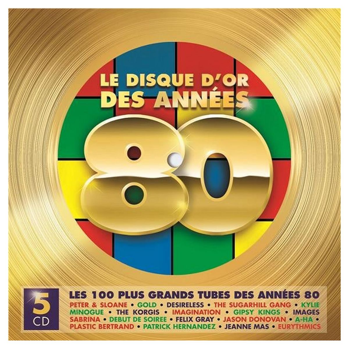 REDECOUVREZ LES 100 TITRES CULTES DES ANNEES 80 DANS UN COFFRET 5 CD INCONTOURNABLE ! AVEC: PETER & SLOANE, GOLD, DESIRELESS, THE SUGARHILL GANG, KYLIE MINOGUE, THE KORGIS, IMAGINATION, GIPSY KINGS, IMAGES, SABRINA, DEBUT DE SOIREE, FELIX GRAY, JASON DONOVAN, A-HA, PLASTIC BERTRAND, PATRICK HERNANDEZ, JEANNE MAS, EURYTHMICS...