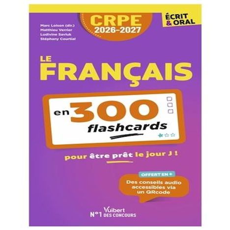 Conçues par un professeur agrégé de lettres et deux professeures des écoles, ces flashcards vous permettront de mobiliser vos connaissances de manière progressive et interactive. Organisées en 5 grandes parties, elles traitent de l'ensemble des savoirs disciplinaires des concours CRPE (L3-M2). Un outil complet : - 300 flashcards détachables , - 1 couleur par partie , - la question au recto, la réponse au verso , - la mention du niveau de difficulté , - des cases à cocher à chaque révision. Le + : Des compléments d'explication audio pour les 10 flashcards les plus complexes !