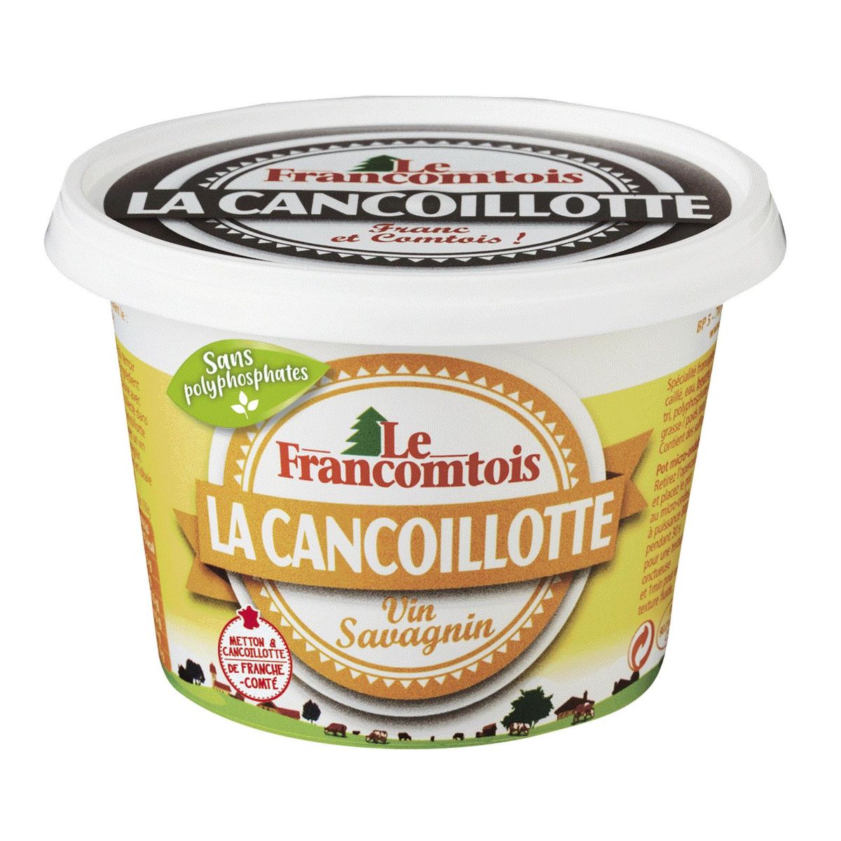 La cancoillotte Vin Savagnin Le Francomtois est une spécialité fromagère fondue dont la texture consistante et filante et aux délicates notes de noix du vin blanc Savagnin, fera le bonheur de tous les consommateurs de cette spécialité franc-comtoise.